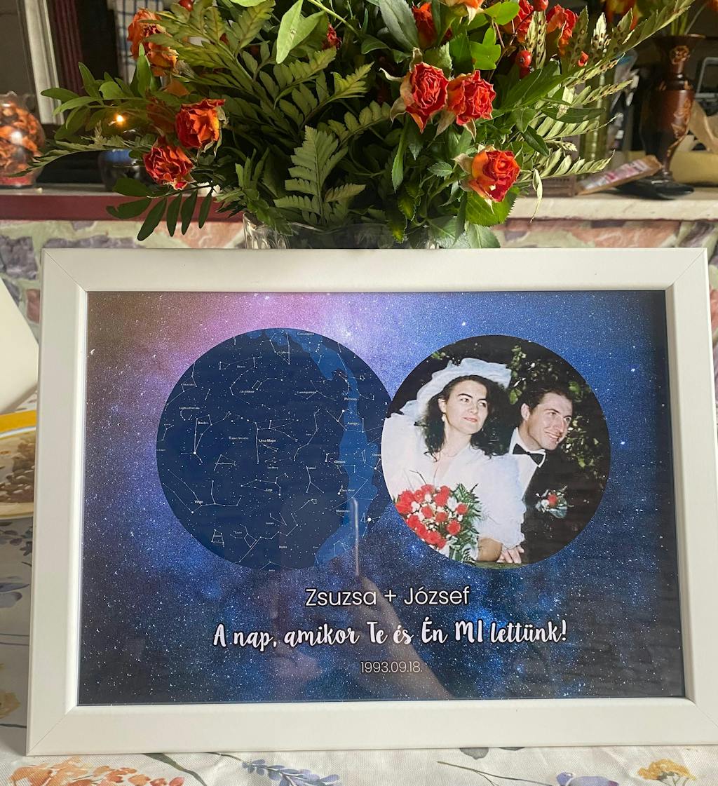 Csillagtérkép fotóval. Nem elég egy szép festés ahhoz, hogy otthonos legyen a lakásod. A személyes dísztárgyak sokat segíthetnek abban, hogy otthonosan érezzétek magatokat a négy fal között. Ha az egyedi képes párnák, vagy órák nem nyerték el a tetszésedet, de mégis szeretnél valami egyedit, ami csak rólatok szól, akkor szerkessz egyedi faliképet.