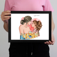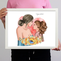 Az Anya-Lánya képkeret vizfesték hatású grafikával és testre szabható karakterekkel rendelkezik, így kiváló ajándék az anyák napjára vagy más különleges alkalomra. A képen megjelenő karakterek haját, ruháját és feliratát is testre szabhatod, hogy a lehető legjobban illeszkedjen az ajándékozotthoz.