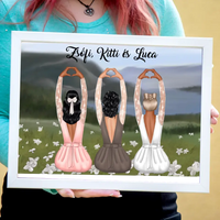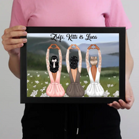 A képen három barátnő látható, akiknek a ruhája, haja és személyes kiegészítői testre szabhatóak, így a falikép minden baráti társaság stílusához és egyéniségéhez igazítható. Ráadásul egyedi név vagy idézet is felvihető a képre, így teljesen egyedi és személyes ajándékot adhatsz át a legjobb barátnődnek.