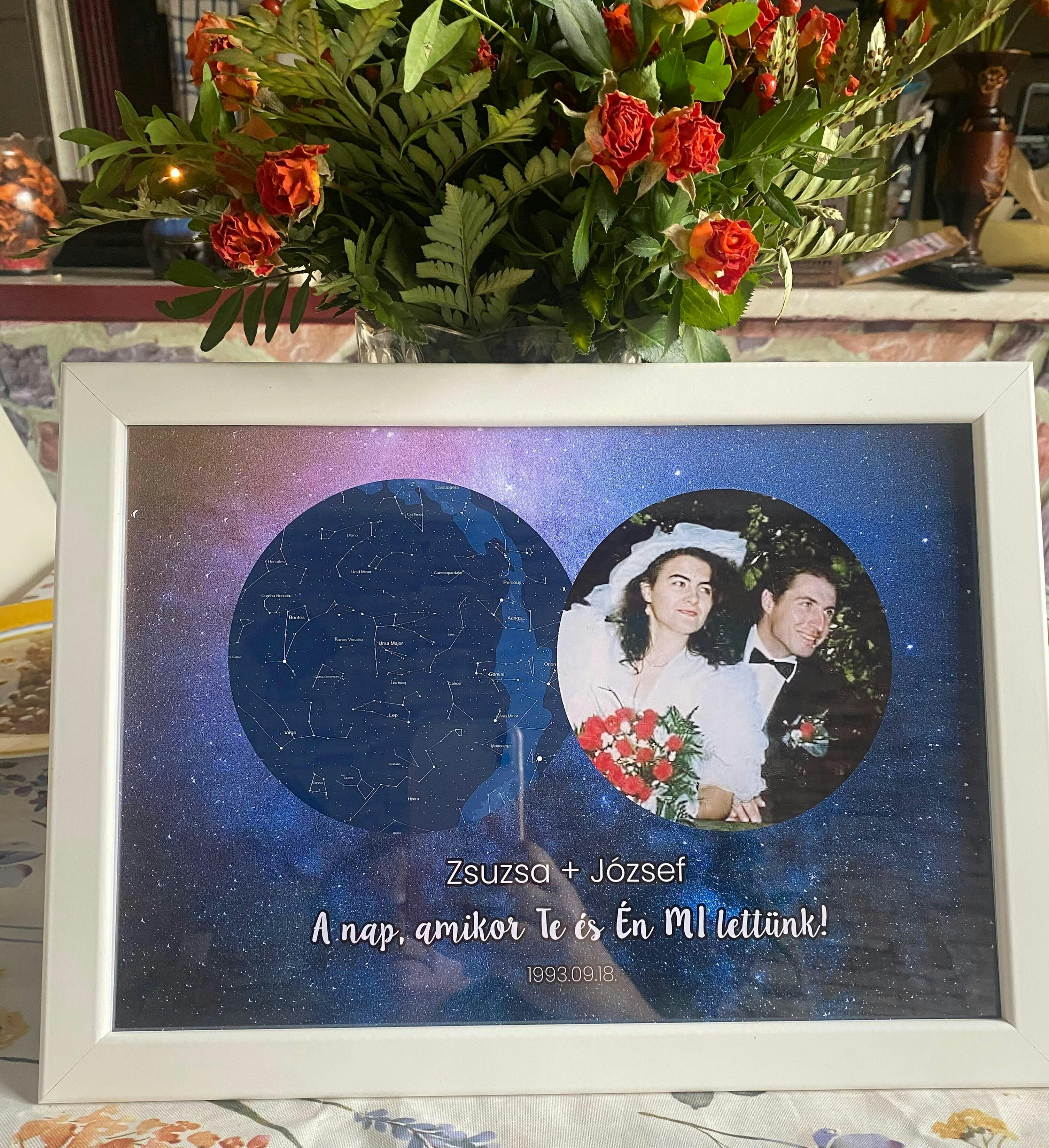 Csillagtérkép fotóval. Nem elég egy szép festés ahhoz, hogy otthonos legyen a lakásod. A személyes dísztárgyak sokat segíthetnek abban, hogy otthonosan érezzétek magatokat a négy fal között. Ha az egyedi képes párnák, vagy órák nem nyerték el a tetszésedet, de mégis szeretnél valami egyedit, ami csak rólatok szól, akkor szerkessz egyedi faliképet.