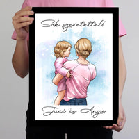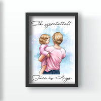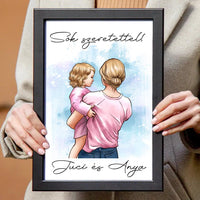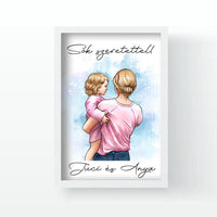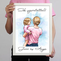 Az anya és baba rajzolt hatású falikép egy kedves és édes ajándék lehet az anyukáknak. A karakterek személyre szabhatóak, így könnyedén testre szabhatod a képet az adott család stílusának és ízlésének megfelelően.