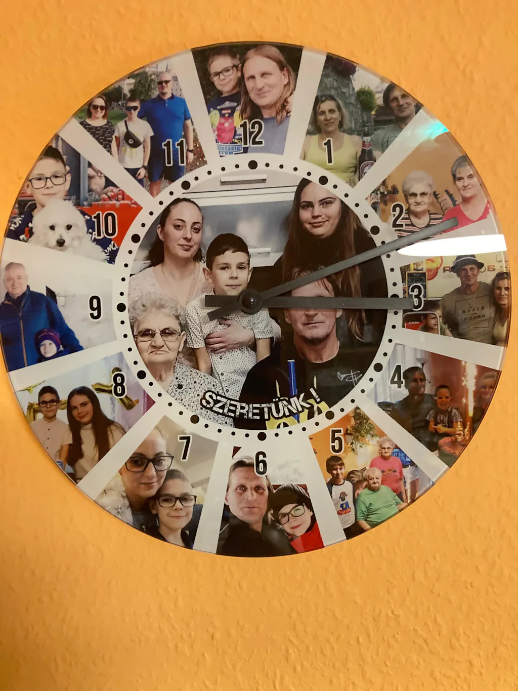 Az egyedi óráink nemcsak különleges ajándékok, de prémium minőségűek is, így hosszú ideig díszíthetik otthonod vagy ajándékozottad falát. Az órák számlapját tartós, karcálló üveglap tesz ki, amely gondoskodik róla, hogy a fényképed élénk színei mindig ragyogóan láthatók maradjanak. Az óramű megbízható, csendes működésű, hangtalan, így nyugodtan használható nappaliban, hálószobában egyaránt.