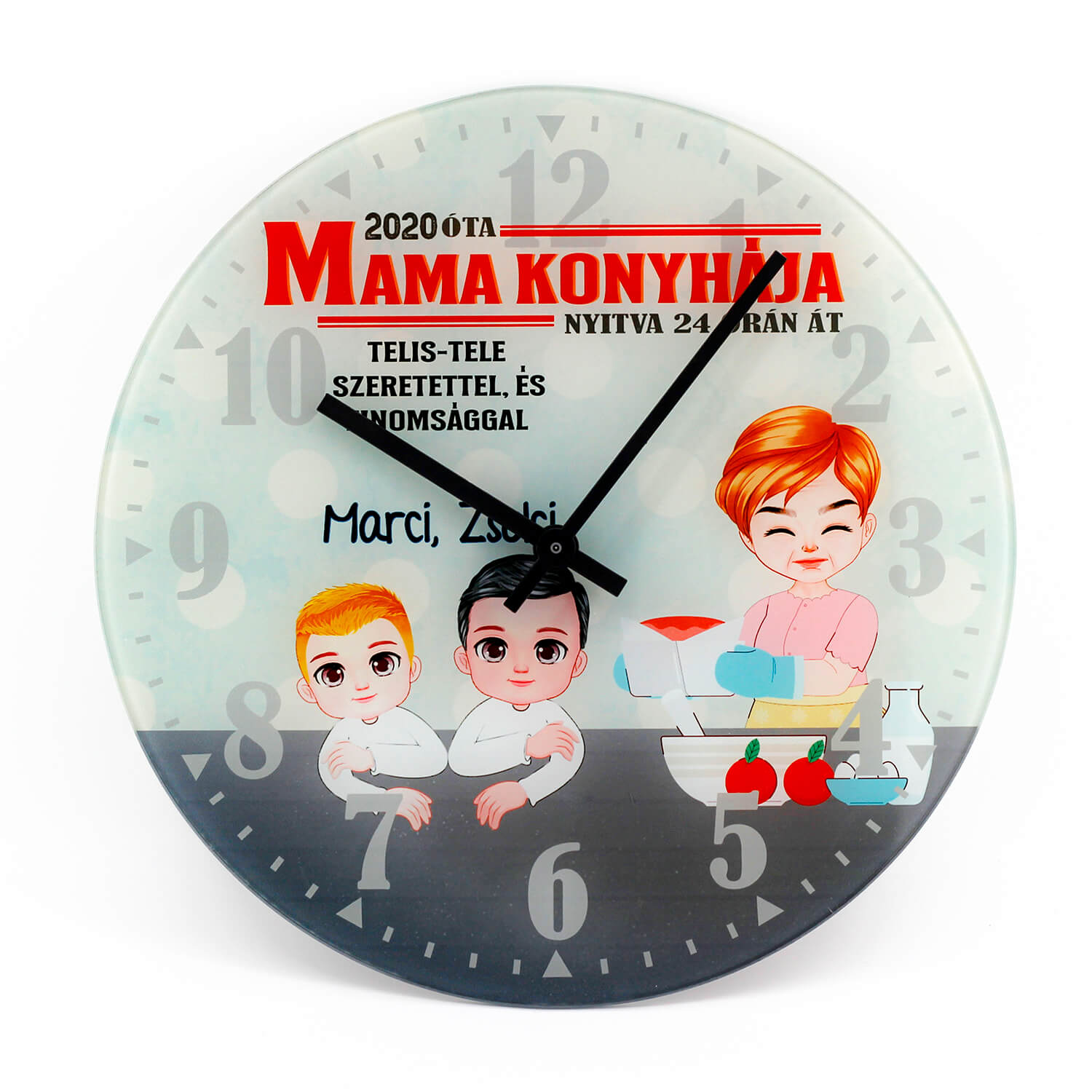 A grafikákat edzett üveglapra nyomjuk, így egy egyedi megjelenésű, csillogó faliórát kapunk.