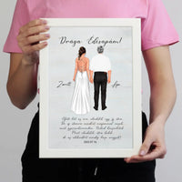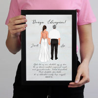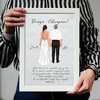 Fejezd ki háládat és szeretetedet ezzel a különleges, szívhez szóló ajándékkal az esküvődön! A Drága Édesapám falikép - személyre szabható esküvői köszönőajándék apáknak termékünket kifejezetten az apukád számára terveztünk. Minden darab egyedi, kiváló minőségű anyagokból készül, és személyre szabható karakterekkel, a nagy napotok dátumával, nevetekkel vagy egy megható üzenettel. Tökéletes módja annak, hogy megmutasd, mennyire értékeled apukád támogatását és szeretetét ezen a különleges napon. Ajándékozz valami maradandót, ami örök emléket szerez neki!