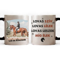 Lovas szív, lovas lélek bögre fényképpel. Egyedi szerkeszthető lovas bögre ajándékba szeretteid számára. Ha még keresed a tökéletes ajándékot olyan rokonaidnak, barátaidnak, akik imádják a lovakat, vagy lovagolnak, akkor itt a tökéletes ajándék. Egyedi felirattal teljesen személyre szabhatod a bögre kinézetét. Egyedi lovas bögre teljesen az ízlésedre szabva igazán szuper ajándék minden alkalomra.