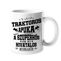 Traktoros apuka- egyedi ajándék bögre apának , mert a szuperhős nem egy hivatalos munkakör felirattal! Ez a feliratos bögre szuper választás minden szakma képviselőjének – legyen szó tanárról, ápolóról, szakácsról, fodrászról, sofőrről, villanyszerelőről vagy kamionosról.